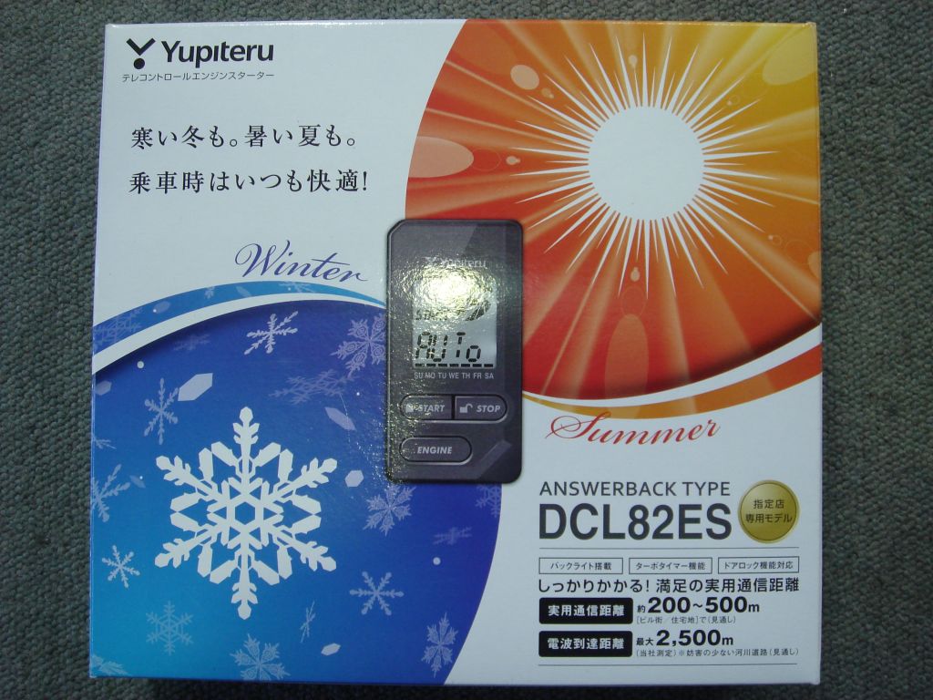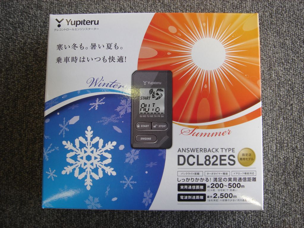 作業内容はですが この暑さには非常に便利なリモコンエンジンスターターです。 ユピテルの指定店モデルであるDCL82ESをお選び頂きました。