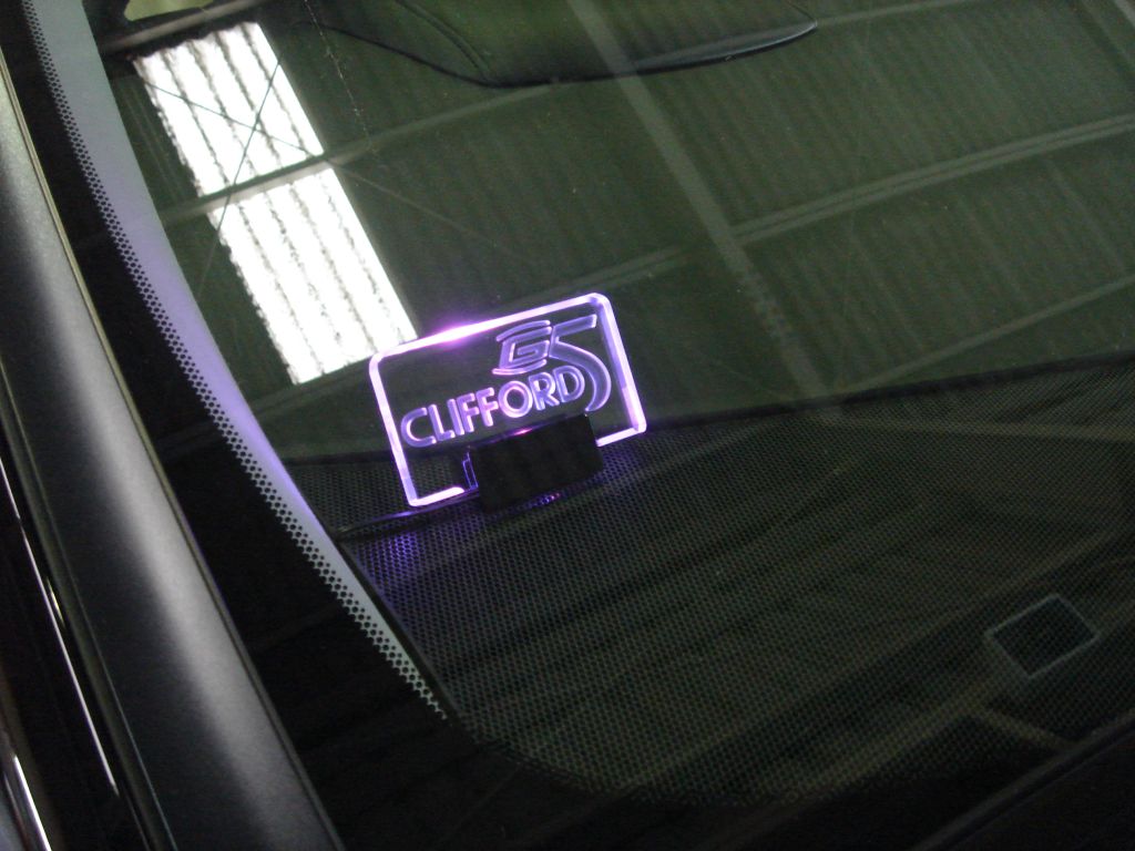 ダッシュに置いたステンレスロゴスキャナーも
